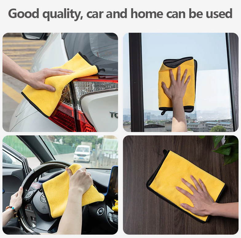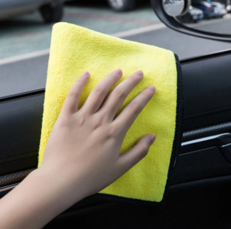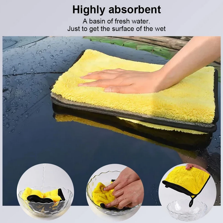 Two-tone coral velvet car towel, high-density, thick, and highly absorbent. Lint-free.